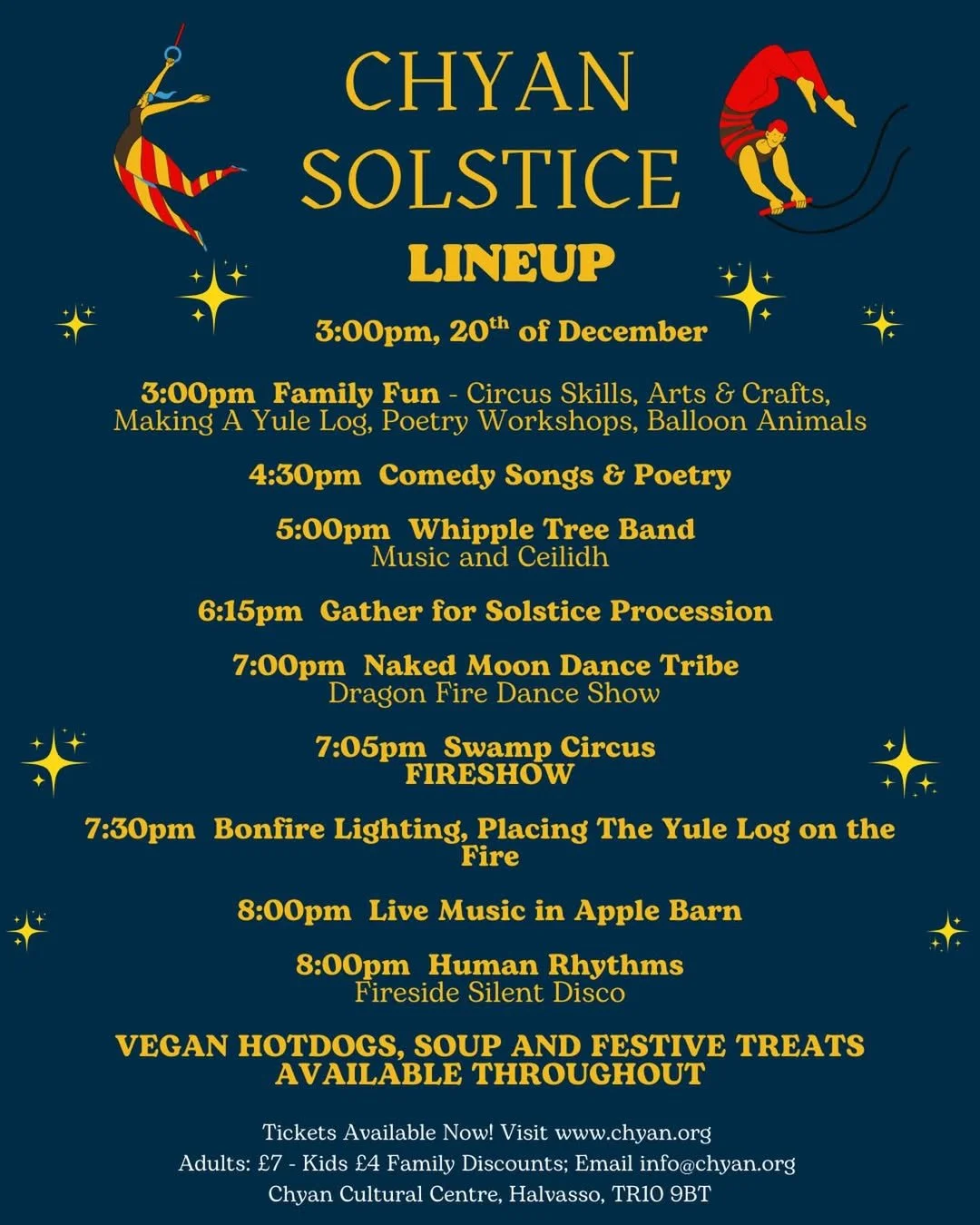 Join us for an unforgettable Solstice Party at Chyan Cultural Centre! Starting at 3pm and going late into the night, our event will feature a Circus Fire Show, Live Music, Cabaret, Family Fun Activities, dancing, and all the Solstice Vibes you could ask for. Indulge in delicious healthy vegan food while enjoying the festivities.